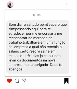 Você acredita que um currículo pode ser tão magnético a ponto de gerar uma contratação em apenas 48 horas? Após um tempo sem trabalhar e mudando de estado, essa aluna usou o método da Raiza e não só conseguiu a vaga instantaneamente, como recebeu um aumento salarial antes do esperado. O próprio RH confessou: “Te chamei por causa deste ponto específico no seu currículo”. Descubra que ponto foi esse.